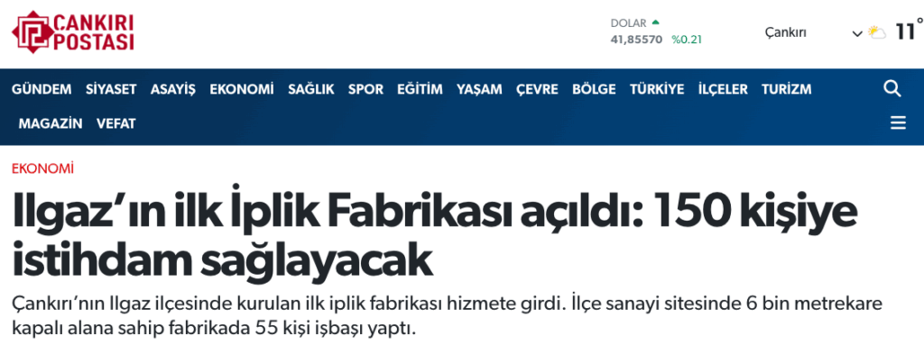 Çankırı’nın en büyük yerel haber sitesi Vaks İplik’i haberleştirdi.